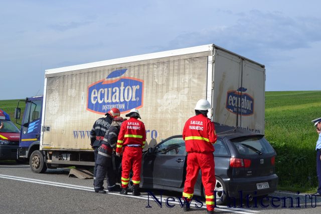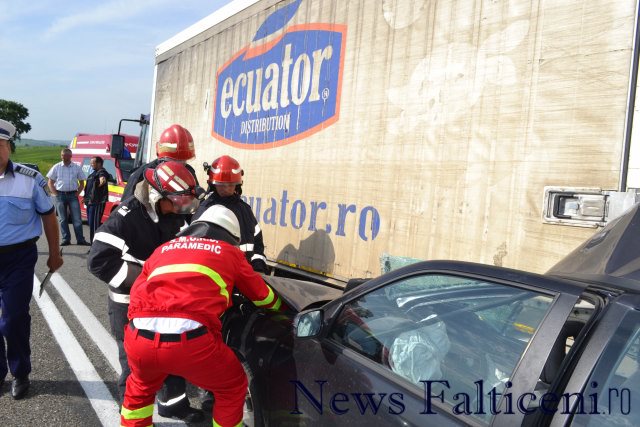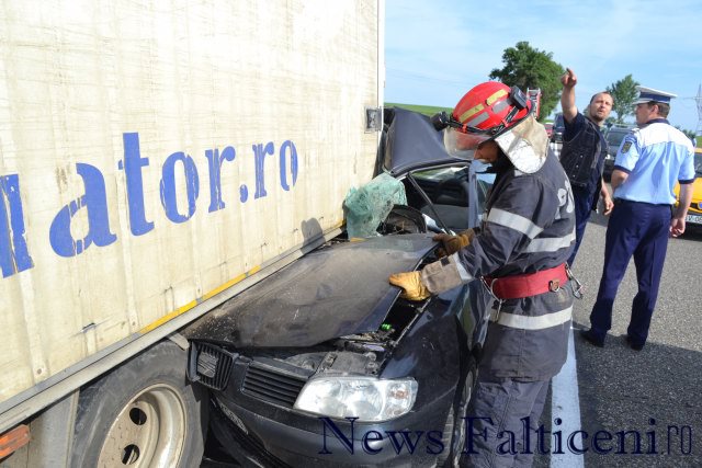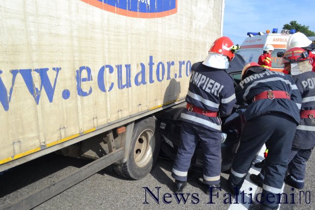 Anunţul venit pe numărul de urgenţă 112 menţiona că, în urma coliziunii dintre un autoturism şi un autocamion, o persoană a rămas încarcerată.