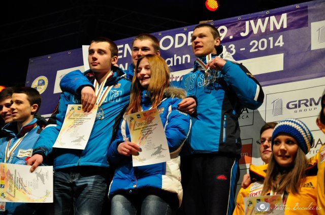 La masculin, campion mondial la juniori a fost desemnat rusul Aleksei Martianov cu un timp total din cele două coborâri oficile de 2:36.17, urmat de austriecii Florian Markt la o diferență de 12 sutimi și Thomas Hoerburger la o diferență de 39 de sutimi. Juniorii români au ocupat locuri modeste, cel mi bine clasat fiind Cosmin Alexandru Codin – locul 13, Mihail Coubis a ocupat locul 24, iar Ionel Marian Nacu-locul 26.