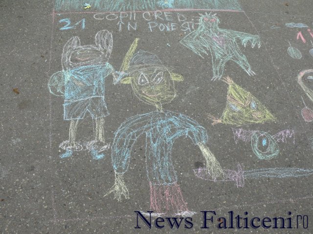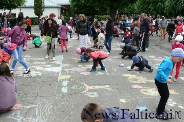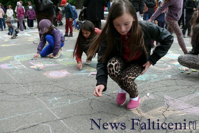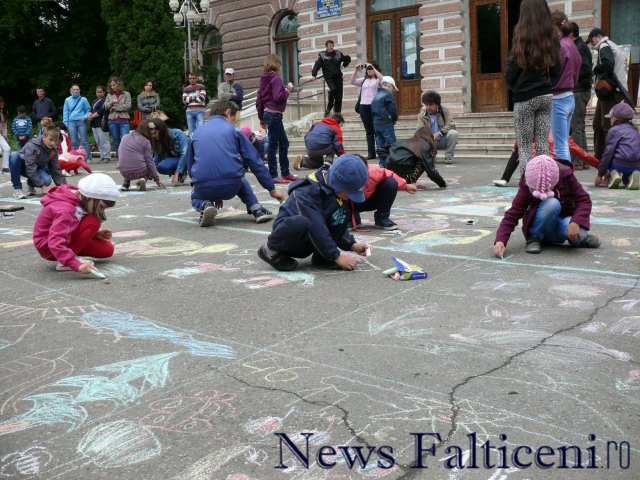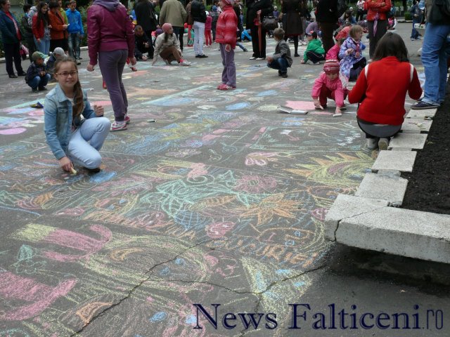 Începând cu ora 12,00, în fața Primăriei Municipiului Fălticeni, peste 100 de copii și-au demonstrat talentul artistic în cadrul unui concurs de desene pe asfalt. Coordonați de Teodora Moroșanu, documentarist în cadrul Muzeului de Artă “Ion Irimescu” și ajutați de părinți, învățătoare și educatoare, copiii au ilustrat cu ajutorul cretei colorate cele mai frumoase momente care le-au marcat copilăria.