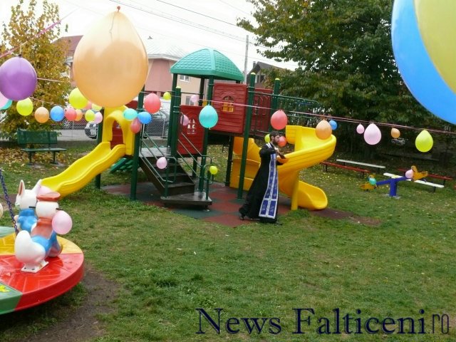 Preoţii Teodor Brădăţan şi Dănuţ Maftei au oficiat slujba de sfinţire a noului loc de joacă şi au stropit cu apă sfinţită grupele şi pe preşcolari pentru ca aceştia să fie păziţi de cele rele, să fie sănătoşi şi s-au rugat la Dumnezeu ca „să le dea minte multă celor mici”.
