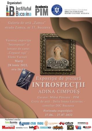 În perioada 27 iunie – 27 iulie 2022, Galeria Zamca își deschide porțile publicului larg cu o nouă expoziție de pictură, intitulată sugestiv “Introspecții”. Punând cu precădere accentul pe senzualitatea și sensibilitatea naturală feminină, lucrările Adinei Cimpoeș ajung pentru prima dată la Suceava, fiind expuse în luna martie la Casa de Cultura ”Platon Pardău” din Vatra Dornei.