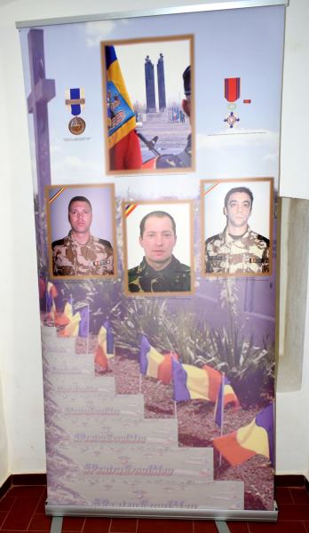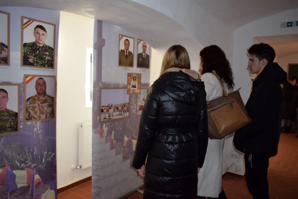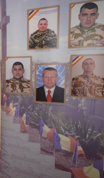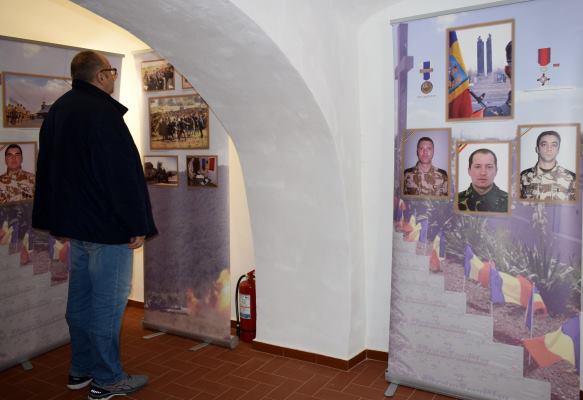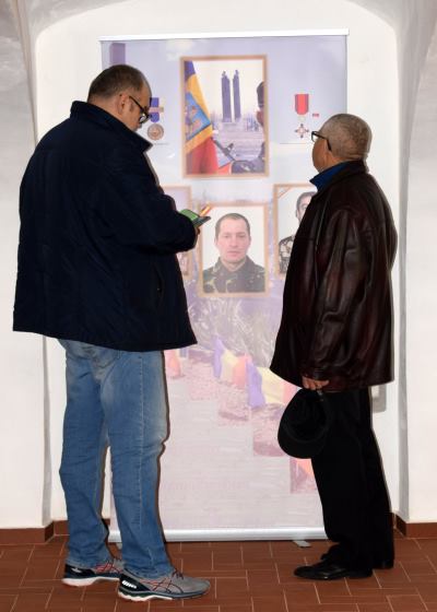 În expoziţie, sunt omagiaţi eroii din judeţul Suceava căzuţi în teatrele de operaţii împotriva terorismului: sublocotenent (post-mortem) Ioan Grosaru (Irak, 21 septembrie 2007) şi diplomatul ONU Filaret Moţco (Afganistan, 1 aprilie 2011), eroi despre care au vorbit şi doi dintre invitaţii la eveniment, senatorul George Mîndruţă, fost militar timp de 21 de ani, din care trei i-a petrecut în teatrele de operaţii în misiuni sub mandate NATO şi ONU în Afganistan, Bosnia, Sudan şi colonelul Tudor Vladimirescu, comandantul Şcolii Militare de Subofiţeri Jandarmi „Petru Rareş” Fălticeni şi care a participat la Misiuni în Afganistan în 2012 şi 2019 – 2020.