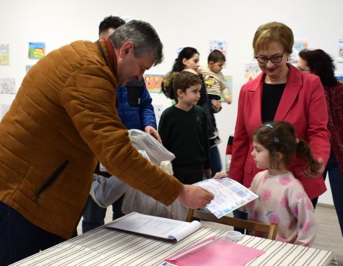 La vernisaj au participat primarul Gheorghe Cătălin Coman, educatoarele care îi îndrumă pe micii artişti, preşcolari, părinţi, directori ai instituţiilor de învăţământ din zonă şi din municipiu.