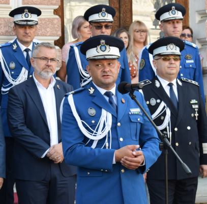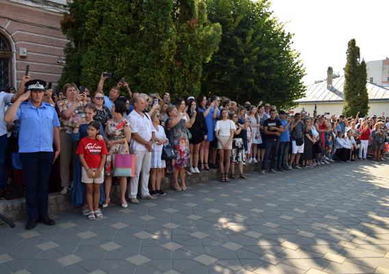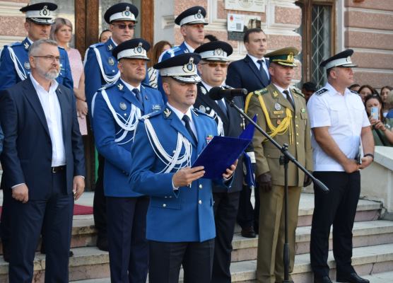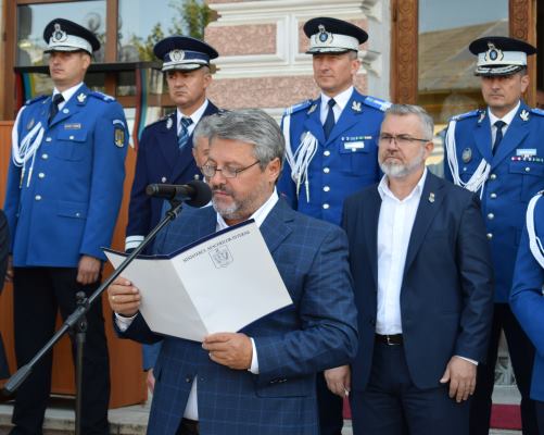 Ceremonia de astăzi este despre reuşită şi emoţie, pentru că jurământul militar este şi va rămâne un act unic în viaţa voastră, un act de profundă conştiinţă, o adeziune sacră şi responsabilă prin care vă angajaţi să puneţi împlinirea datoriei faţă de ţară, popor şi valorile naţionale mai presus de voi înşivă. Prin rostirea acestui jurământ veţi purta în suflet drapelul tricolor, simbol al gloriei şi onoarei militare, a unităţii poporului român, fiind de astăzi alături de ceilalţi militari ai ţării forţa, puterea şi viitorul patriei noastre România”, a spus chestorul principal de poliţie, Valentin Minoiu