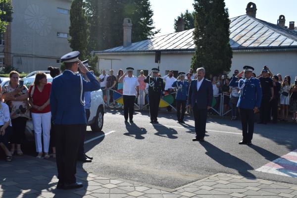 La ceremonia desfăşurată în faţa Primăriei Municipiului Fălticeni au fost prezenţi reprezentanţi ai Ministerului Afacerilor Interne, ai Jandarmeriei Române, ai autorităţilor judeţene şi locale, instituţiilor militare din judeţ, ofiţeri în rezervă şi retragere, părinţi, rudele şi prietenii elevilor.