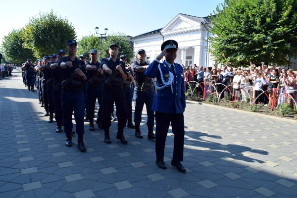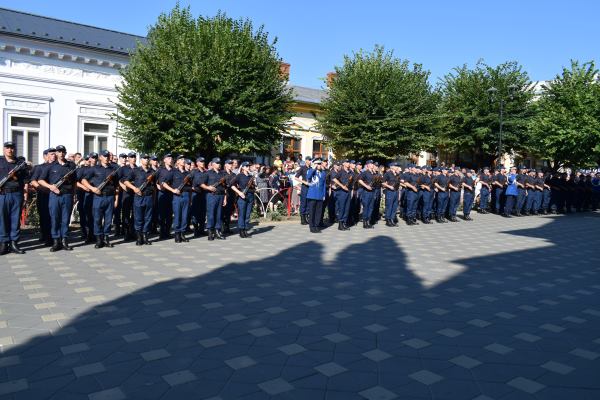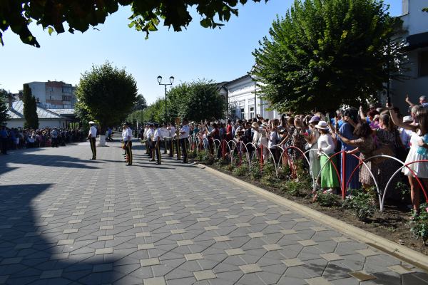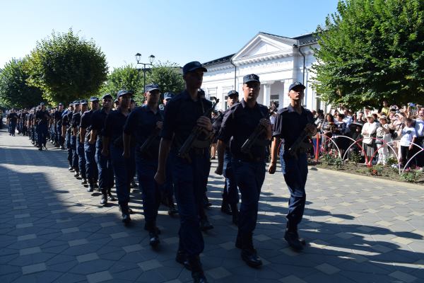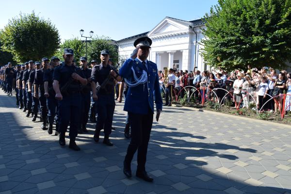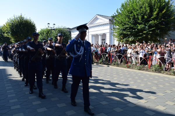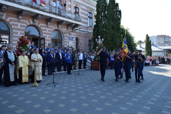 Rostirea Jurământului militar şi intonarea imnului de către cei 153 de elevi de la Şcoala de Subofiţeri Jandarmi Petru Rareş din Fălticeni, au fost acte de conştiinţă patriotică şi civică prin care elevii şi-au asumat răspunderea de ostaşi. Au fost urmat de alocuţiunile invitaţilor. Primul care a luat cuvântul a fost primarul Cătălin Coman, care a vorbit despre o zi deosebit de importantă din viaţa tinerilor care îşi asumă cu adevărat statutul şi obligaţiile unui militar.„Suntem într-o locaţie frumoasă din municipiul nostru şi împreună cu domnul colonel Tudor Vladimirescu, comandantul unităţii, nu am ales-o întâmplător. Suntem lângă Biserica <Adormirea Maicii Domnului>, pentru că nimic nu e fără Dumnezeu. Mai aproape avem <Altarul eroilor> din Războiul pentru Independenţă şi din cele două Războaie Mondiale, asta ca să vă insufle curaj şi să aveţi un ţel în ceea ce priveşte cariera militară. Suntem în faţa clădirii Primăriei şi Consiliului Local al Municipiului Fălticeni. Asta simbolizează rolul pe care îl veţi avea în dezvoltarea comunităţii şi legătura strânsă pe care trebuie să o aveţi cu comunitatea astfel încât să ne simţim protejaţi şi ocrotiţi”, a spus primarul Cătălin Coman